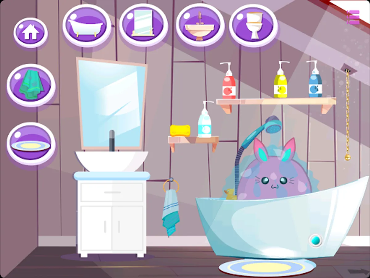 Customize his bathroom, and give a bath to your cute Mochi plush or to the baby animals! Decorate the 3 bedrooms for your babies' animals plushes.