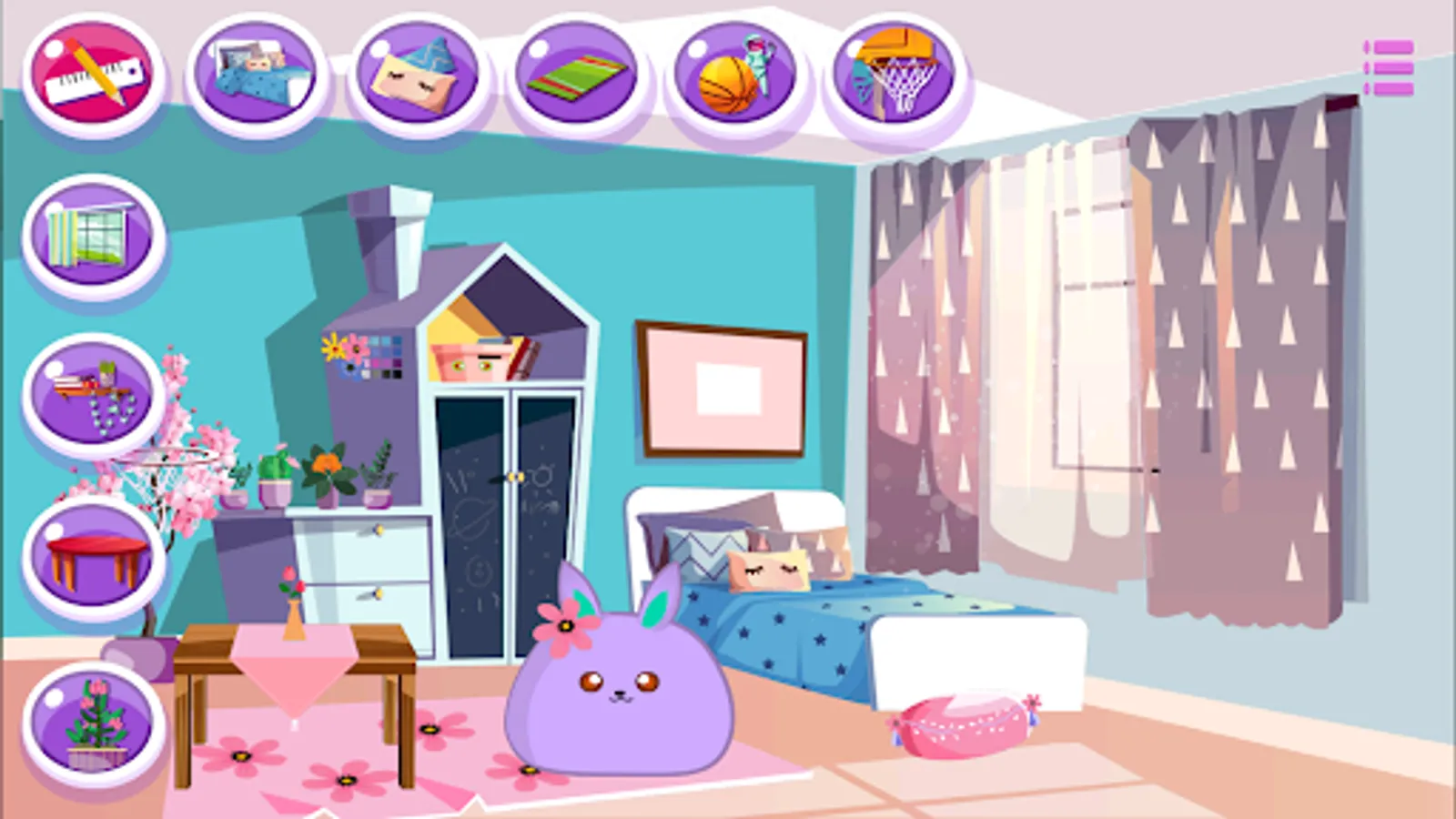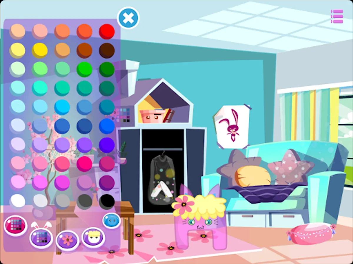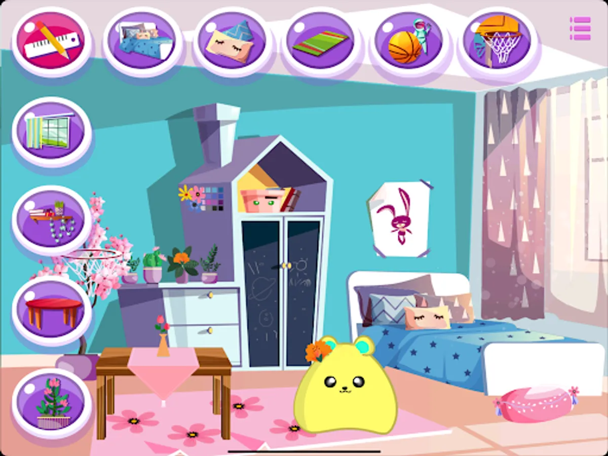 Decorate your Mochi bedroom, modify colors and decorate the bedroom of your Mochi by adding cute furniture for unstoppable entertainment!