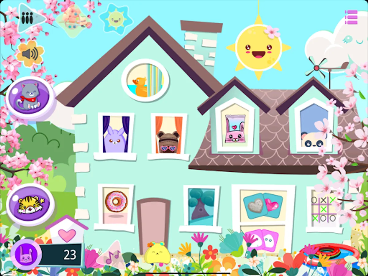 In the dispensers room, you can get kawaii stickers for your collection. Paste them in the virtual album. Get over 100 different foods for your Mochi as well as cute baby animals plushes. Babies can be installed in an adorable baby room, and you can take care of them: decorate the baby room, feed the babies, dress them, bath them, ...
