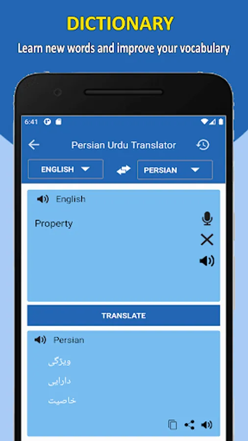 اردو سے فارسی ترجمہ ایپ طلباء ، بڑوں اور ایسے دفاتر میں کام کرنے والے لوگوں کے لئے استعمال