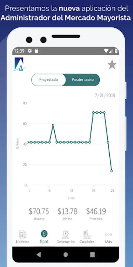With this application you can consult the graphics of the Projected and Post-Dispatch Spot, of the Programmed and Real Generation, and of the Declared Flows by Generator. You will also receive notifications of the news and events published. In the case of events, you can schedule reminders for your calendar. You can also access Daily Schedule Statistics and get in touch with our offices.