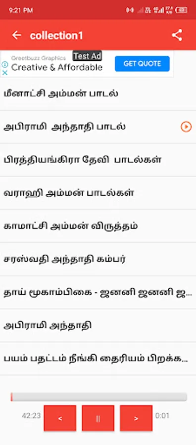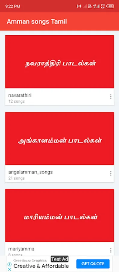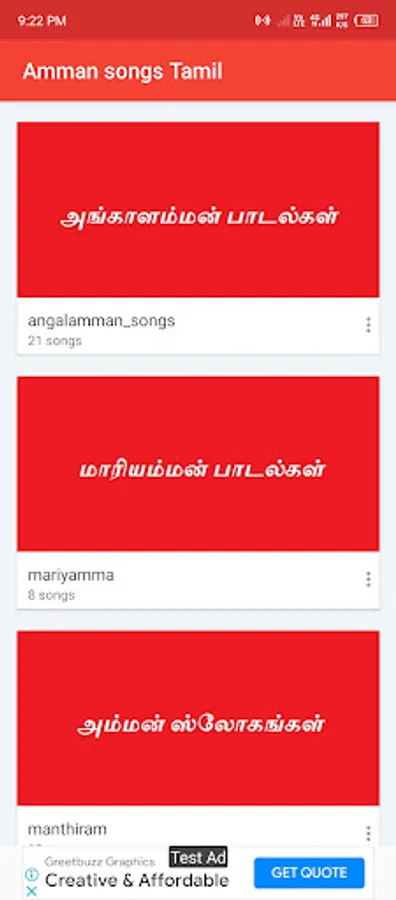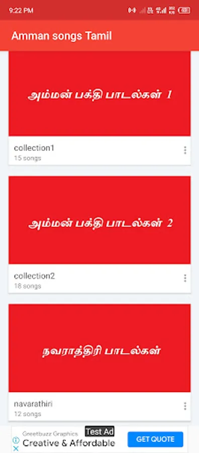 The online Amman songs in tamil mp3 plays Amman songs about god amman in tamil.This app contains nonstop audio Amman audio Songs. No need for Amman Songs audio download just stream Amman songs tamil from online. Amman tamil songs online player requires the Internet to play the audio songs. Amman Songs audio is a clear sound and good quality.