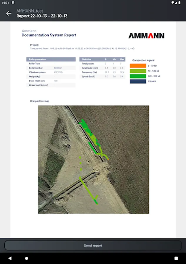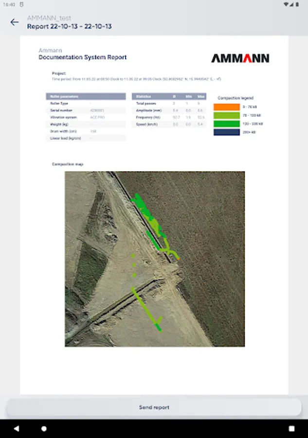 Ammann Documentation System (ADS) enables documentation of Job-site compaction results measured by ACEforce or ACEpro systems installed on Ammann Heavy compaction machines, combined with GPS position for precise localization.