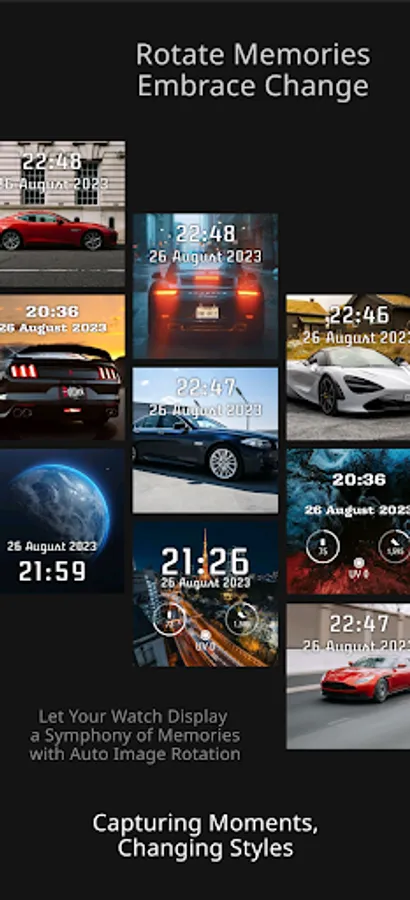 WillowMotion photo watch face comes will free GIF photo gallery, provide the user to download variety style of pictures and set it to your background screen of your watch face.