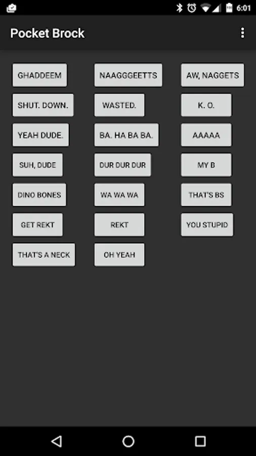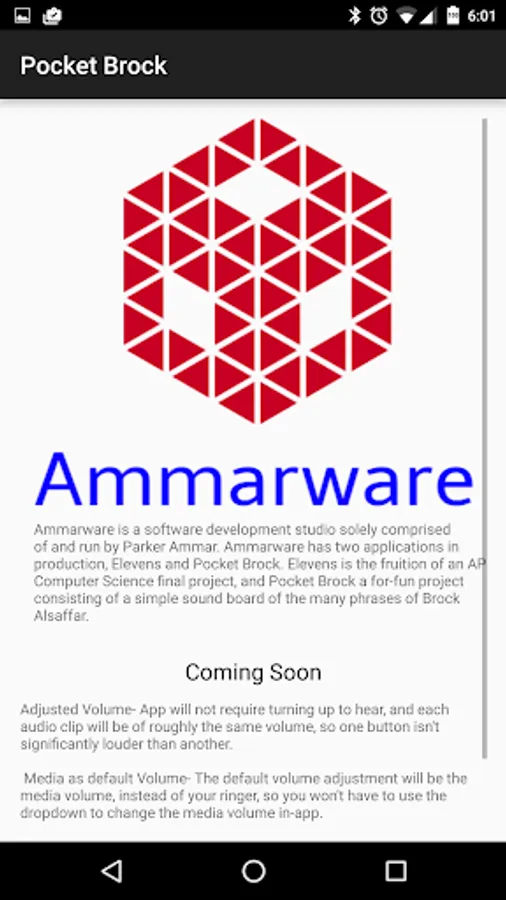 Pocket Brock is the second app developed by Ammarware software, run solely by Parker Ammar. The app includes several dialogue selections recorded by Brock, that include iconic phrases, such as: