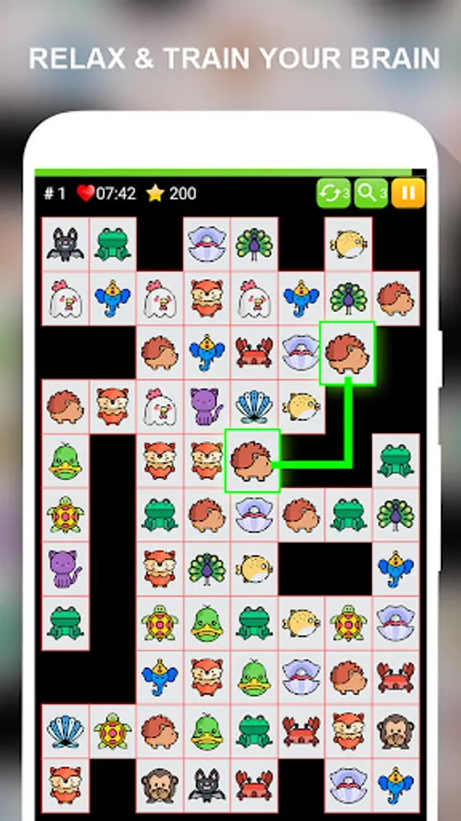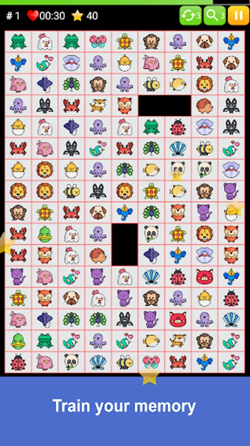 ★ Connect 2 identical animals with no more than 3 lines.