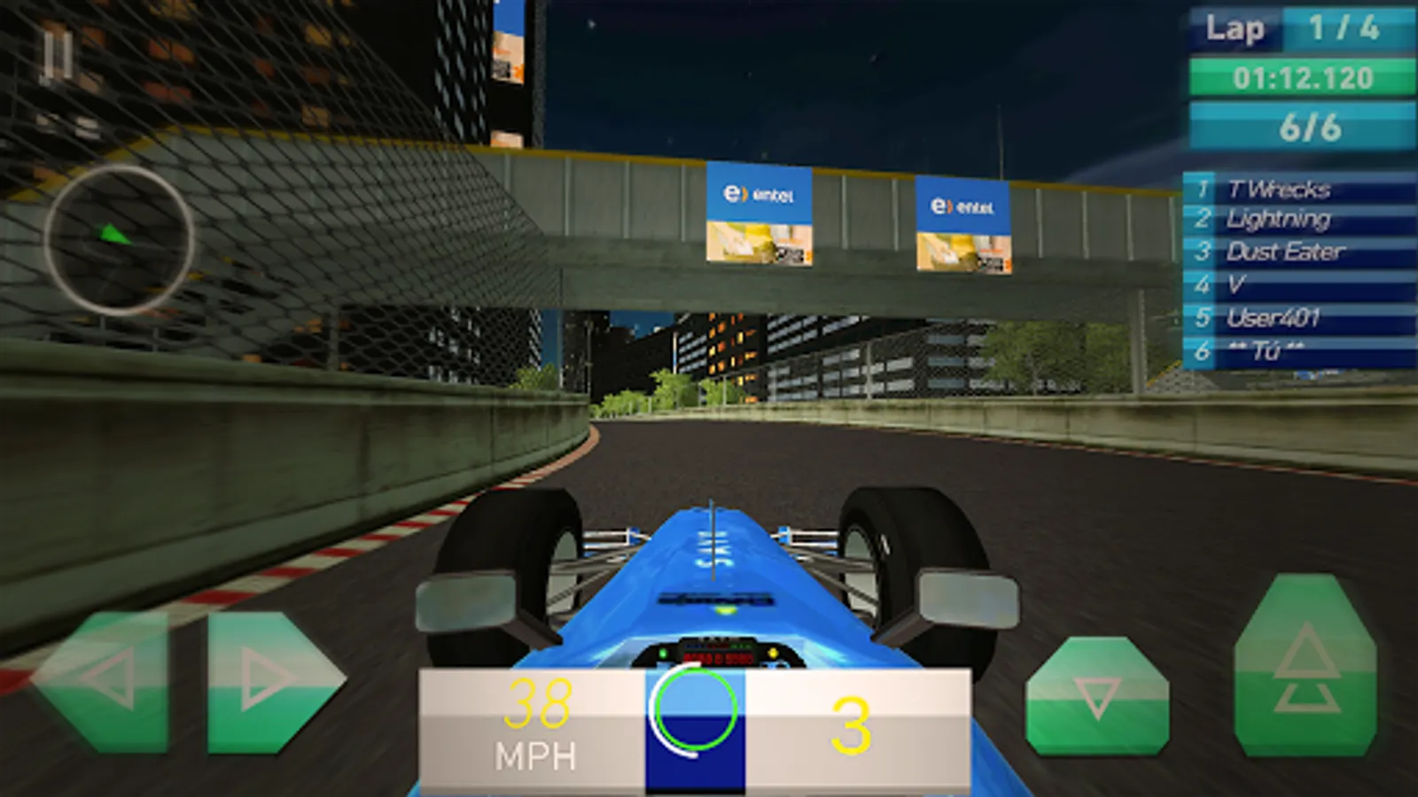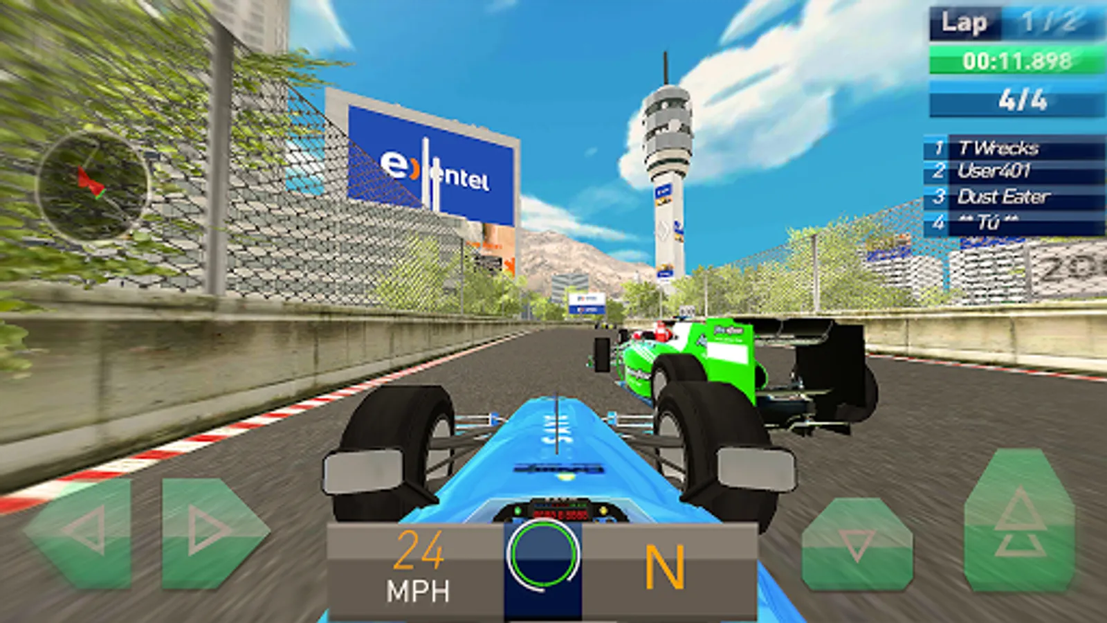 It is the championship of Formula-1 2030 and runs in Santiago. The cars are electric and are very powerful. They have an impressive pique!