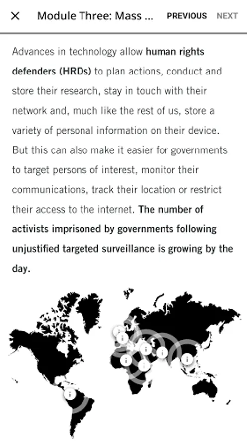 Amnesty International’s Human Rights Academy offers a wide variety of human rights courses in more than 20 languages. Every single one is available for free through this app. These range in length from 15 minutes to 15 hours, and many offer an official Amnesty International certificate upon successful completion.