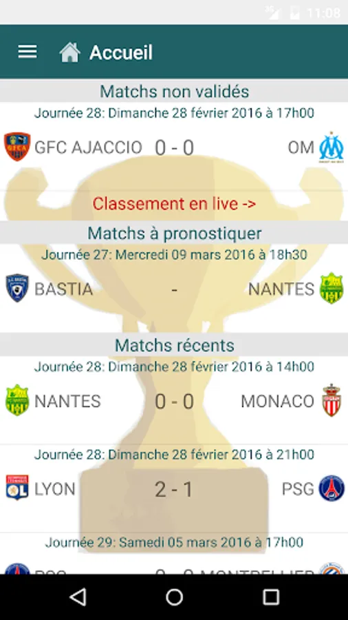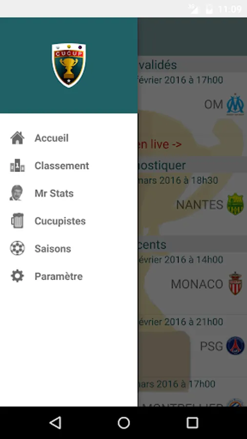 The application also allows cucup vibrate with live monitoring of live games and real-time notification when a goal is scored, and calculating the ranking live with evolution.