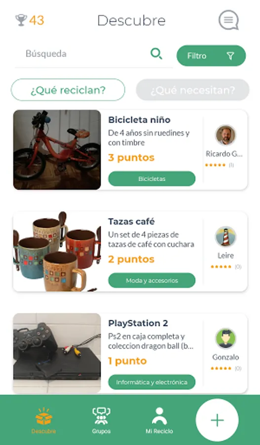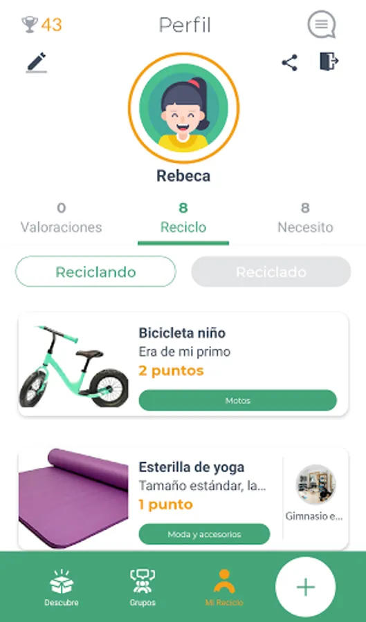 Reciclo was born with the mission of helping to have a better, more sustainable world, respectful of the environment and committed to the future of society and our children. It is an APP for the exchange of objects for points. We put people who no longer need an object with people who may need it (Only for points, not for money) If you don't want something, give it a second life, don't throw it away - give it away - recycle it.