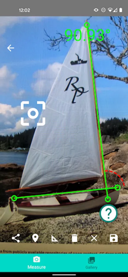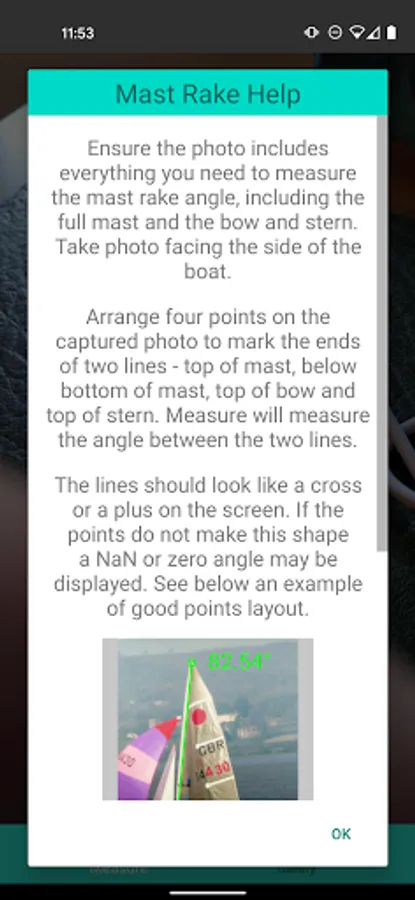 Capture a photo of a boats mast then add points to the photo to measure the angle relative to the boat.
