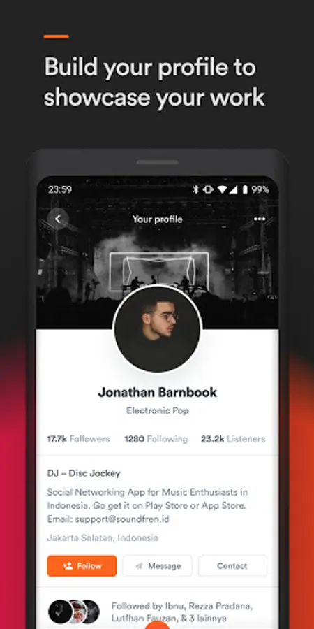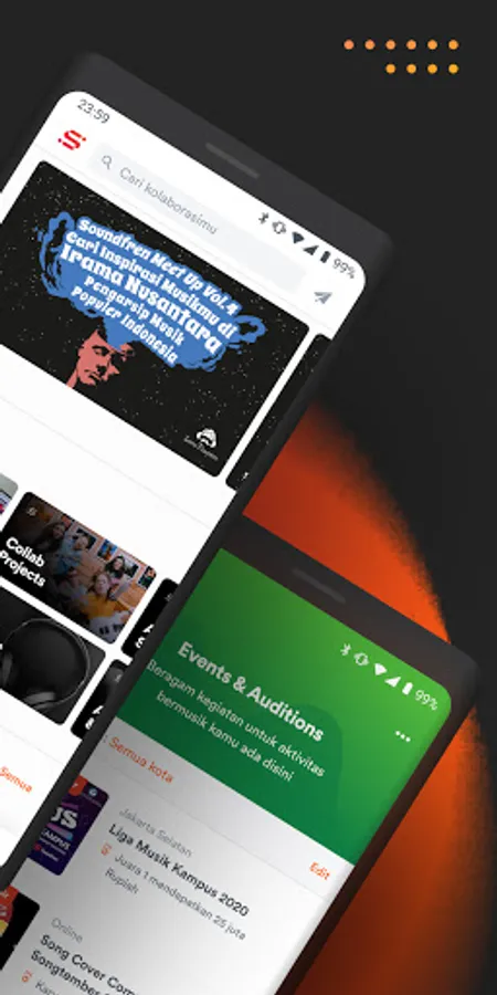 Ever thought about getting serious in the Indonesian music industry? Clueless which to contact, or short in talents? Soundfren does more than helping you stay connected with other musicians and music communities. Soundfren is your personal platform to share your portfolio, experiences and to build networking relationships. Introducing Soundfren, the platform for musicians, talents, engineers, and everyone in the music industry to connect, collaborate, and produce wonders—connecting music community as one.