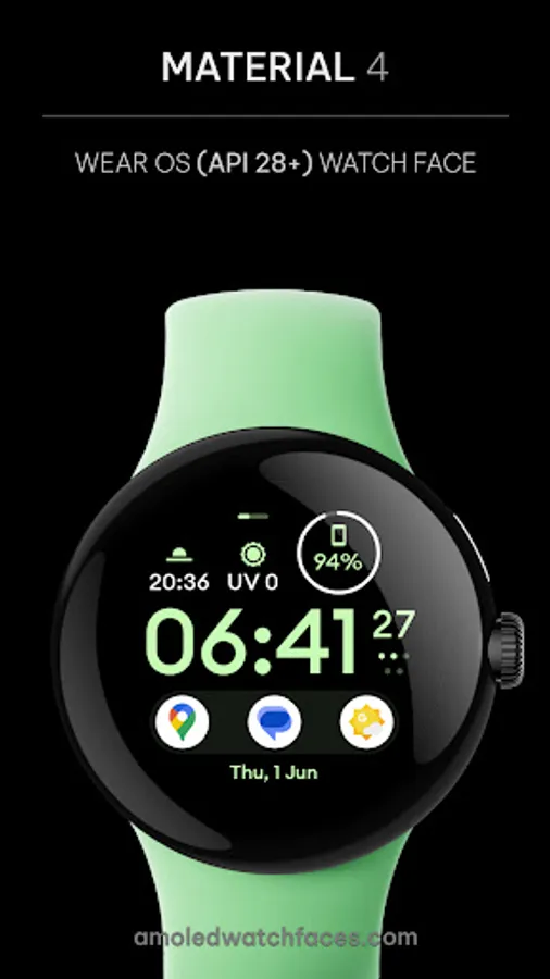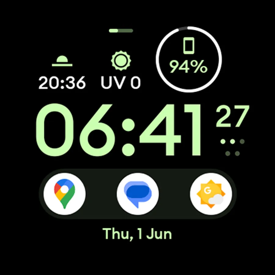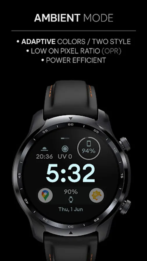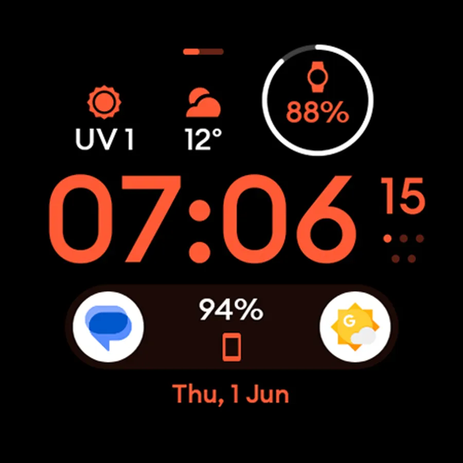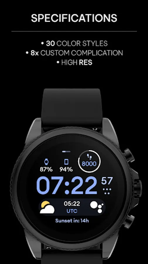 NOTE: Custom complications shown in the listing screenshots may not be part of your device and need to be installed additionally. Complications mostly come from 3rd party apps like Complications Suite etc.