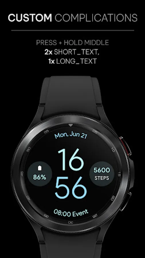 • 3x custom complications (2x SHORT_TEXT, 1x LONG_TEXT)