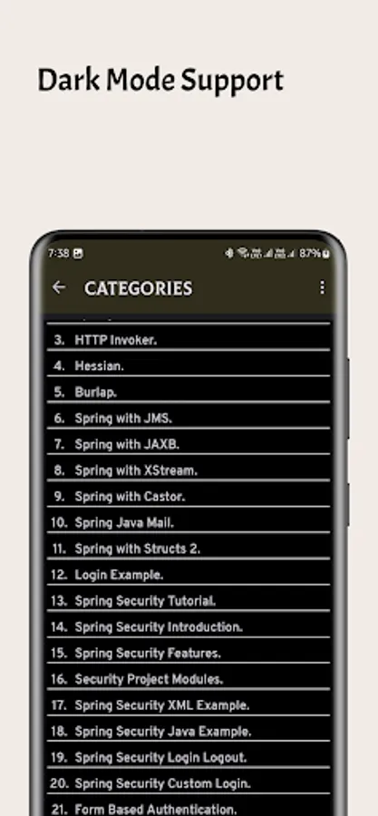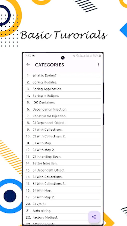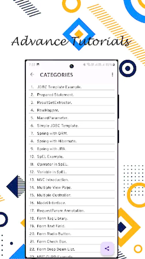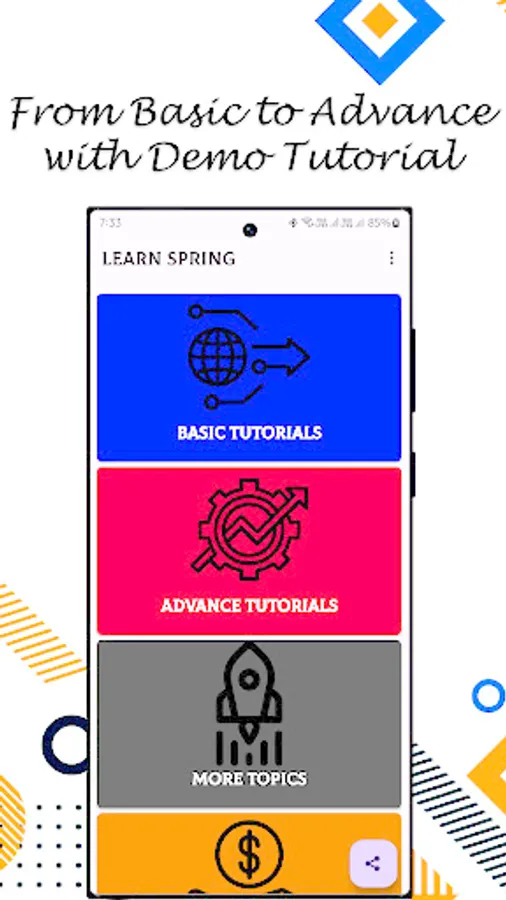 Learn Spring is a great android application to learn new Java Framework - Spring. It include from basic to advance topics with detail demo with source code available in application. Spring is a Java Framework to learn Spring you have to learn Core Java then Core Spring, Spring MVC, Spring JDBC.
