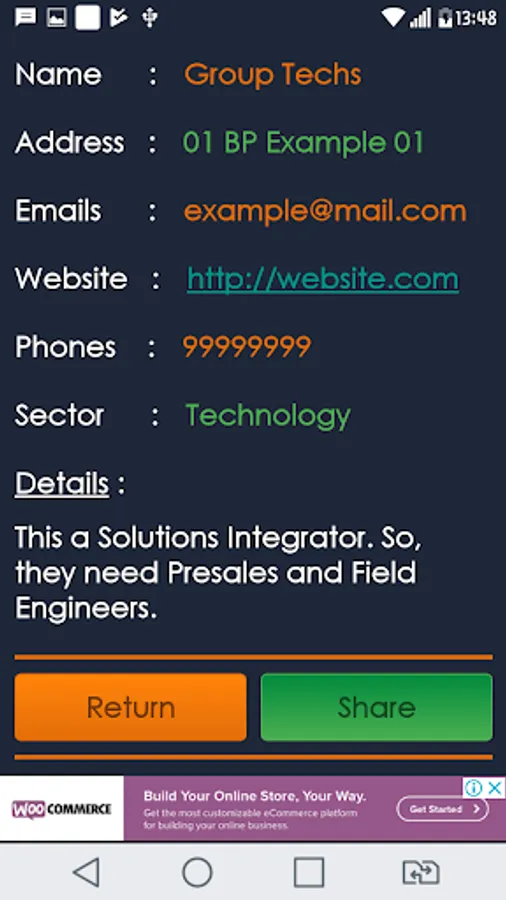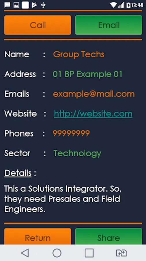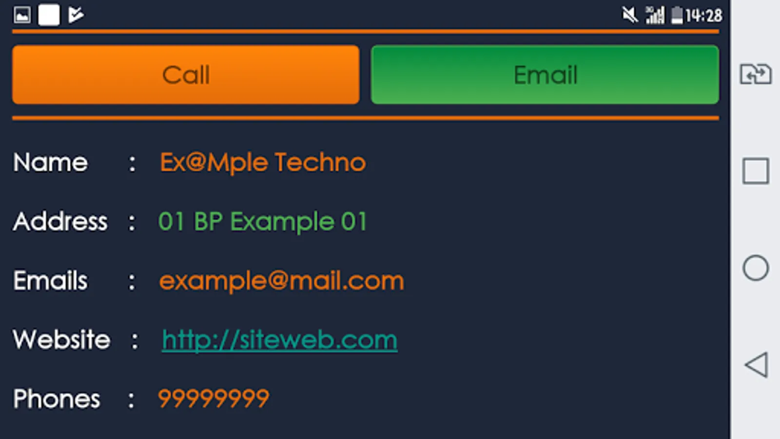 This application provides your a fully dynamic list of companies that are currently based in Ivory Coast, and where technical people can work. So, it is a gift for all IT guys. . These companies also may consume IT products. So, it is a gift for Sales and Business Developers persons. All information mentionned are based on my knowledge in the IT area, on the feedback made by filling the in-app contact form, and lastly on information gathered from the web. For each company, you have the name, the address, the phones numbers, the emails address, the website, the area of work and a small details about others aspects. You have some shortcut buttons that help you place a call, share the information, email a company, visit the website by just clicking on a button.