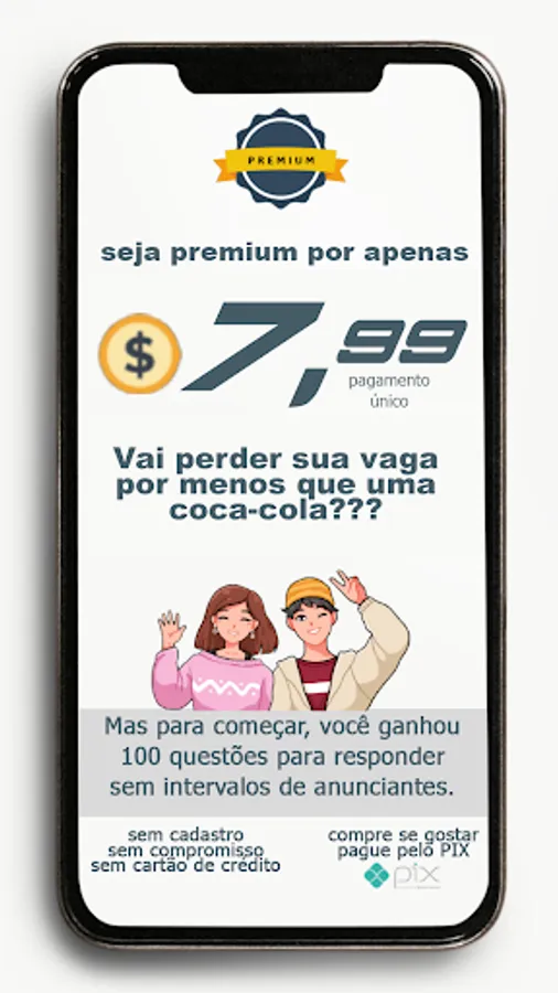 And speaking of Premium, you can unlock all features and remove ads by making a PIX of just R$7.99. Part of this amount (25%) is intended for the distribution of food baskets to people in need. Release is immediate.