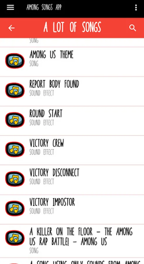 "Among Songs App" is the best app to listen the best songs for amongus lovers, it contain a lot of songs for free.