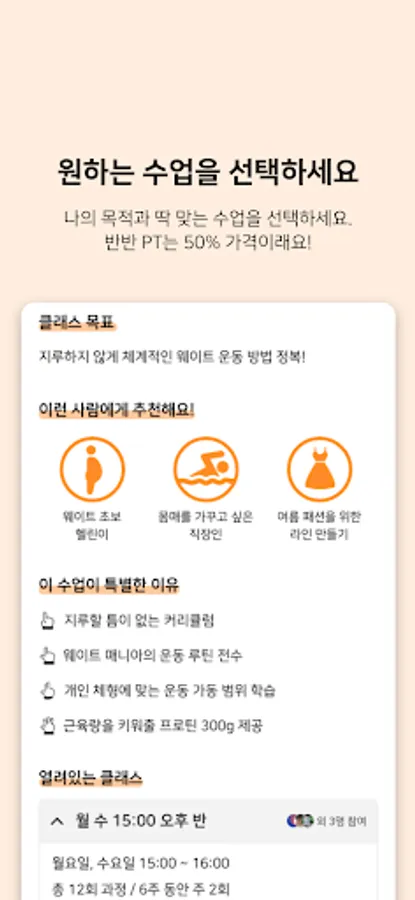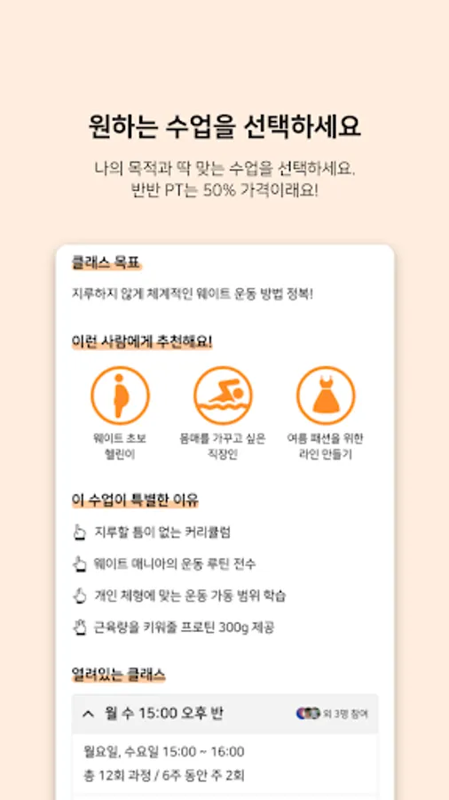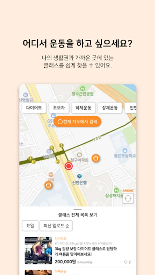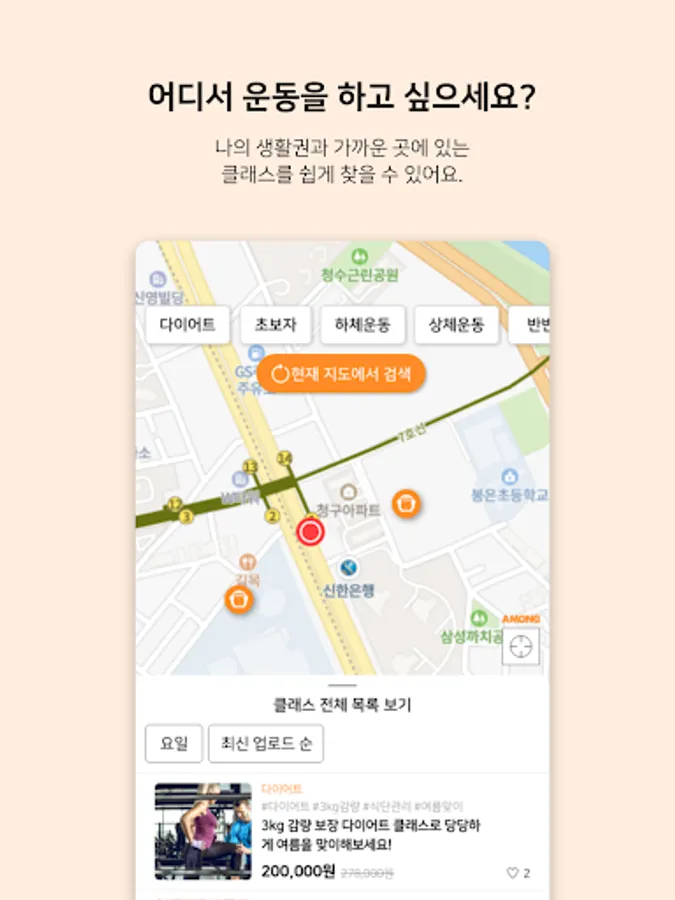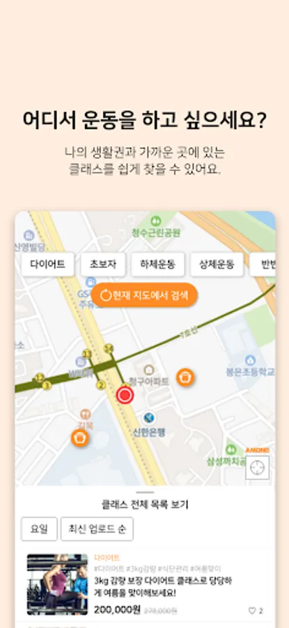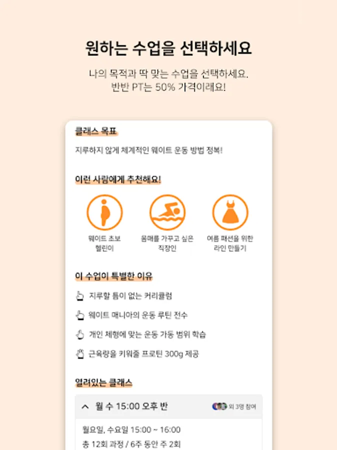 - The first and only fitness class share service in Korea that shares PT classes with people with the same exercise purpose and living area at half the price