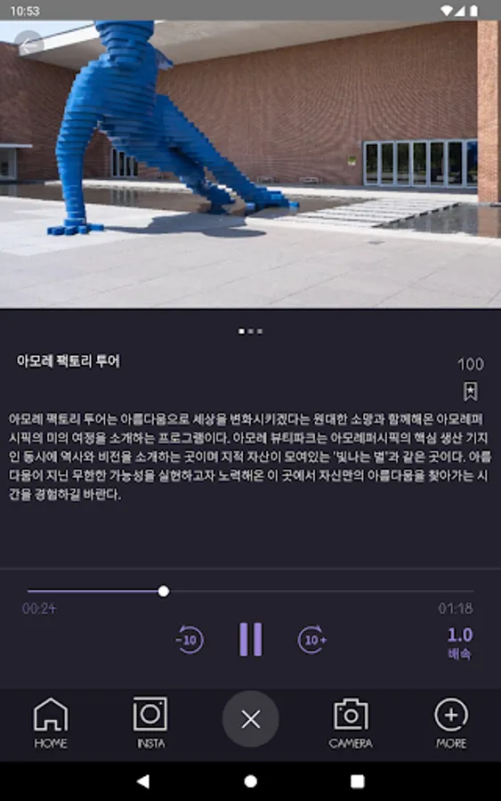 - You can freely take photos during the tour using the camera function in the APP, and you can check more diverse content through the Instagram shortcut.