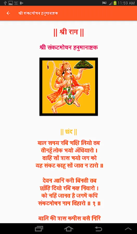 Presenting (Text Only) Sri Hanuman Chalisa as well as Sankatmochan Hanumanashtak, Bajrang Baan, Shree Hanumat Sthavan, Shree Hanuman Ji Ki Aarti, Shree Ram Avatar Stuti, Shree Rama Stuti, and Shree Shivapanchakshastastotram. Whose regular reading brings new light and energy in life.