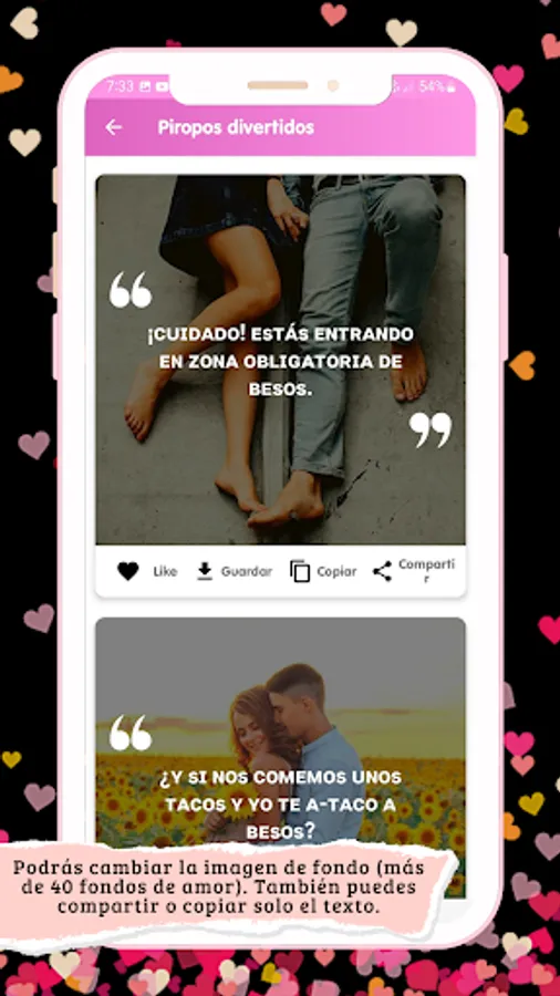 The inspiration left for a moment, do you need compliments to make a man fall in love, spicy compliments, compliments for my boyfriend or compliments for my husband or compliments for a boy you like? Can't find the exact words? Well, here comes the solution to your problems ... π₯°πWith the App Compliments for a Man you can send compliments of love for my boyfriend or your husband and any man you like, with just one click. πππ You can also save your favorite love compliments in a special section, to use it at the exact moment. So you will not have to look for it among the others again.