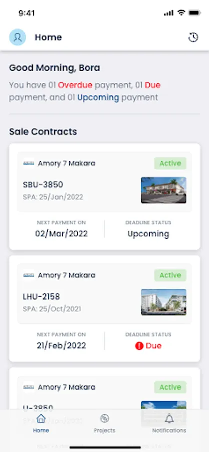 The app features the list of available properties with all the necessary details information of Borey Amory house types.