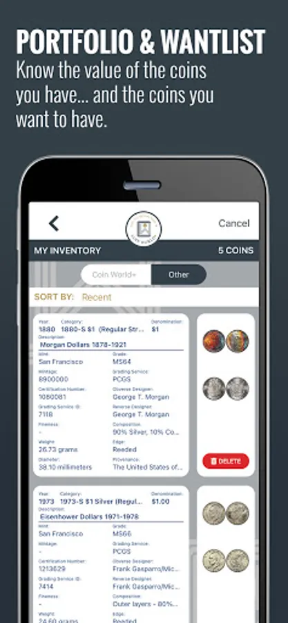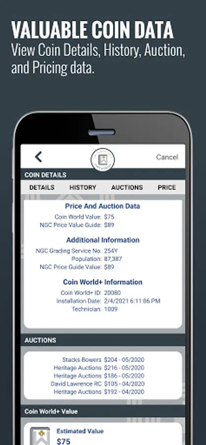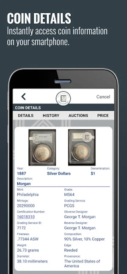 - See coin values, sale history and grading service data