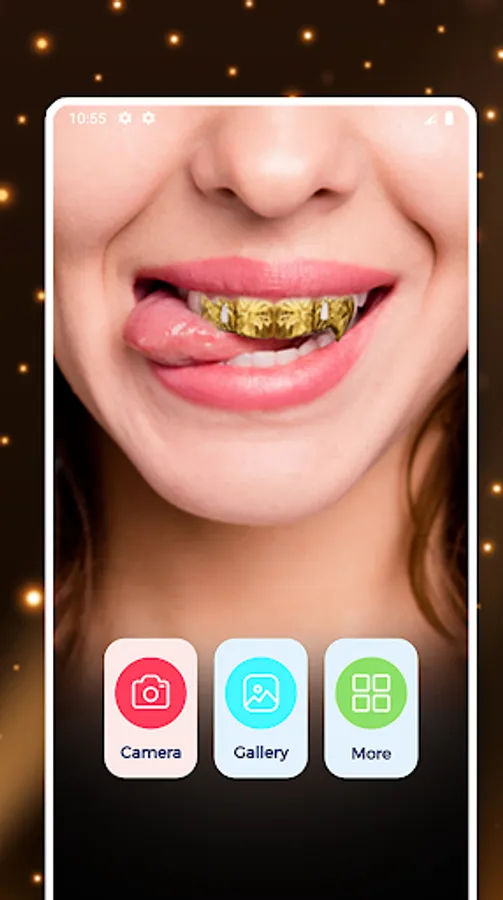 Gold teeth Photo Editor & camera to feature real gold grills in your image.
