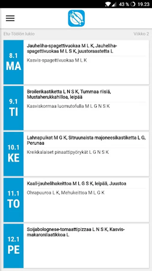 Koulusafka there are schools in the territory of Finland serves the menu of the application, which have built up a group Etu-Töölö high school students "NY - Year entrepreneur" -yrittäjyyskurssilla.