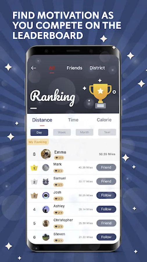 Take on exciting challenges and events solo or with others. Conquer the leaderboard, stay motivated and reach new achievements.