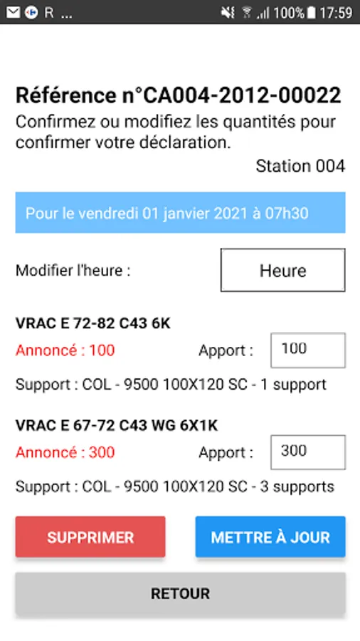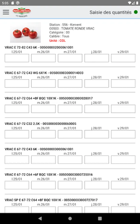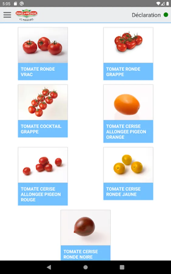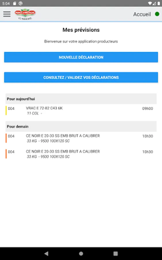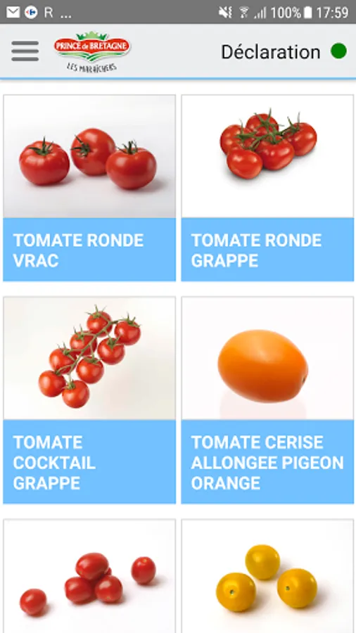 Contribution declaration application for use by "Prince de Bretagne" producers.