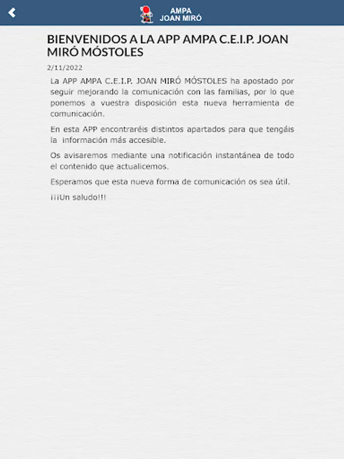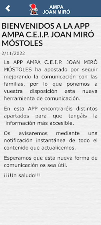 From this APP, we will keep you informed through instant notifications of all the activities, news and events that we carry out, we will also send you all the information that we understand is of interest to you in the education of your children.