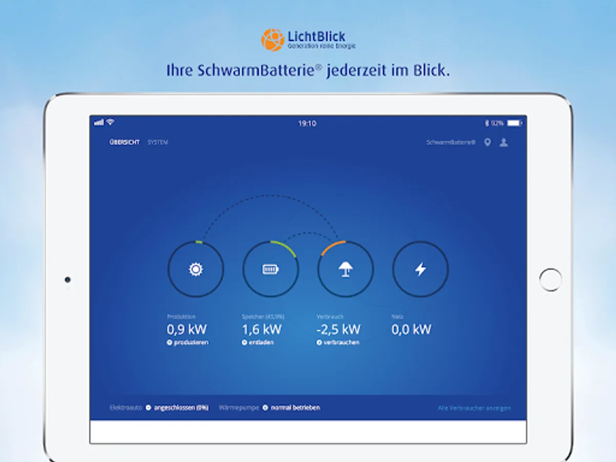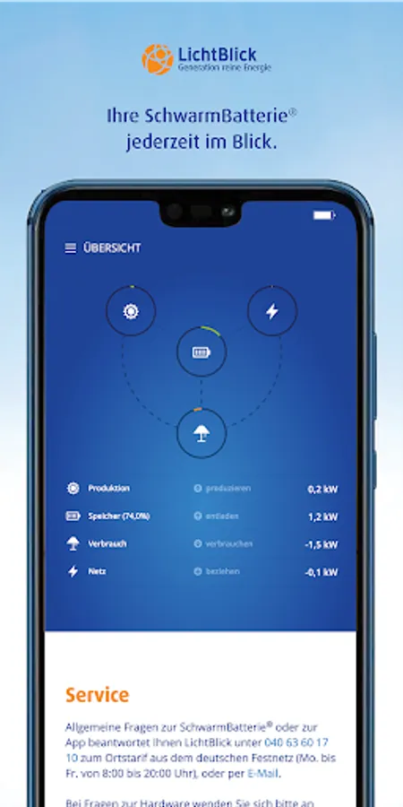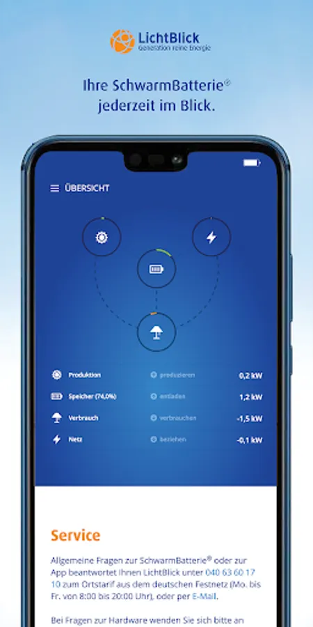 We welcome feedback on the SchwarmBatterie® offer or the app at schwarmbatterie@lichtblick.de