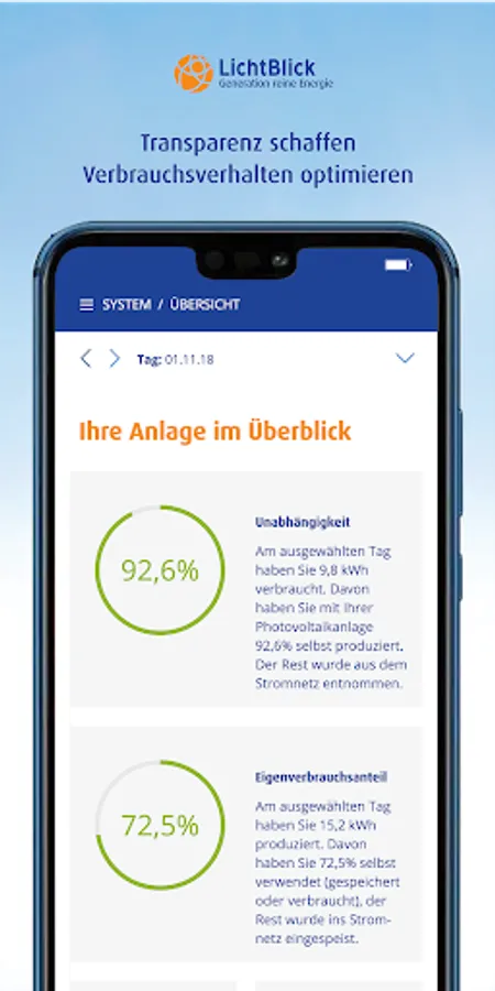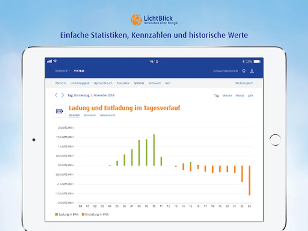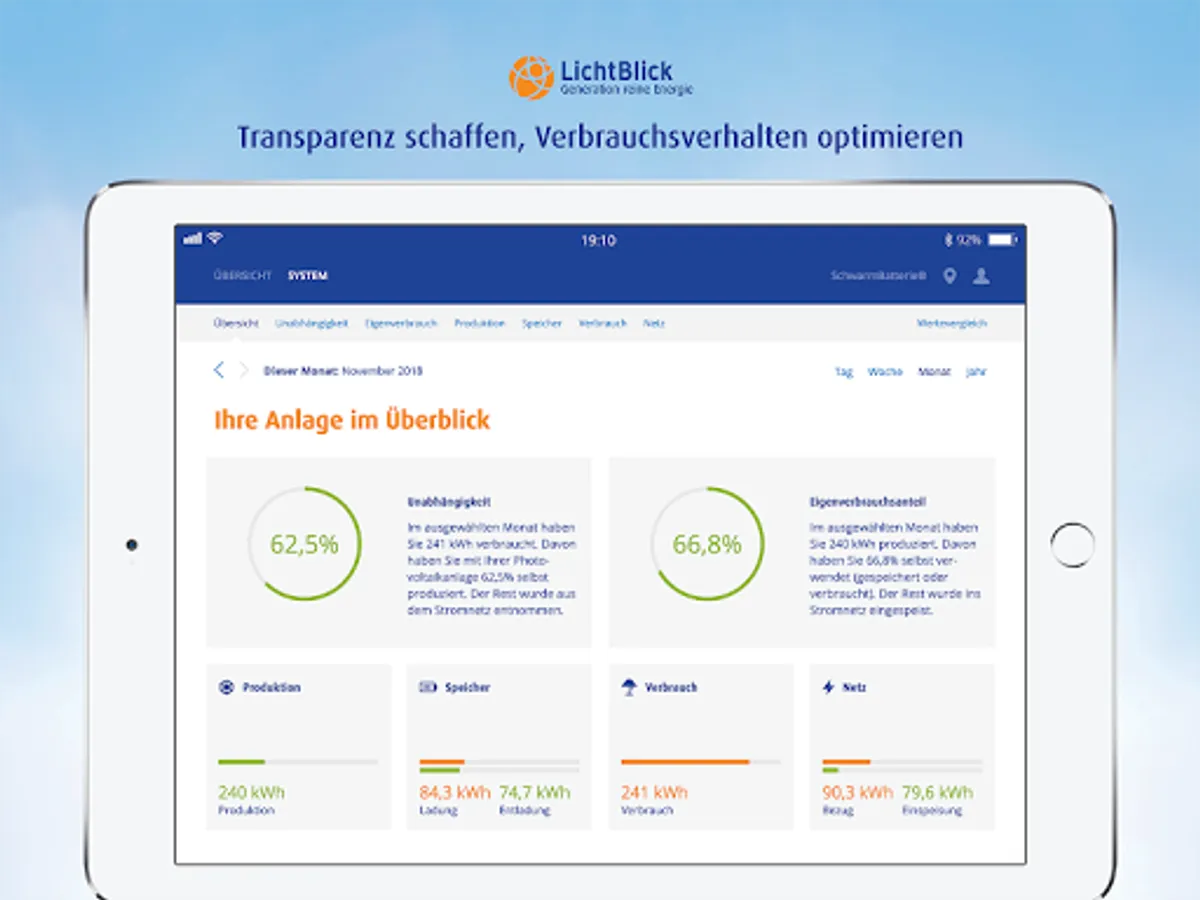 With the SchwarmBatterie®, LichtBlick offers an unbeatable complete solution, with which you can supply yourself with a large part of your own electricity. As a perfect complement to your sustainable electricity production LichtBlick provides you with 100% green electricity from Germany for the residual electricity needs. The integration of your battery in the LichtBlick swarm stabilizes the public power grid. Together with LichtBlick, you become the maker and designer of the energy transition.