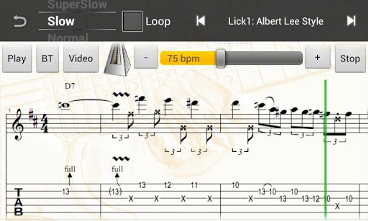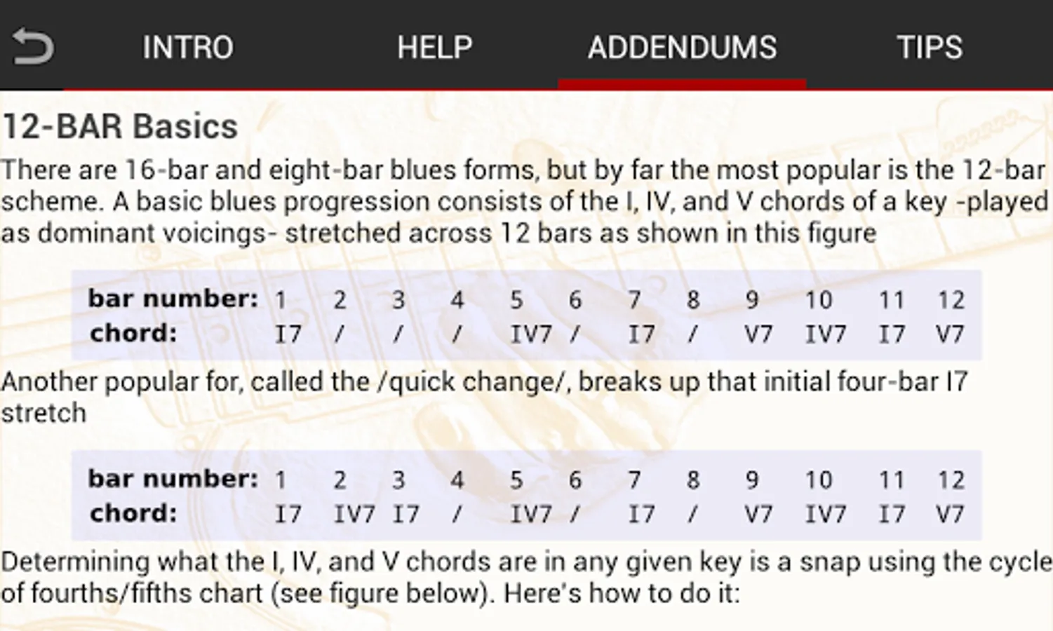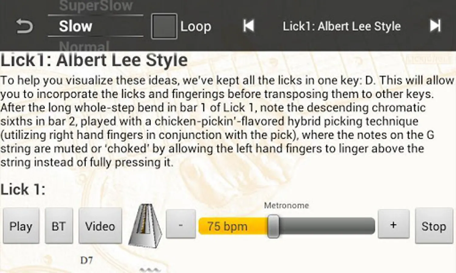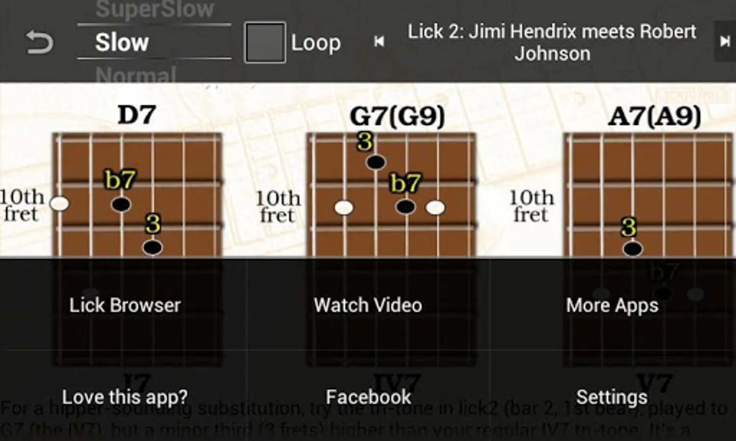 • 8 licks -- paid version has 20 Licks with audios and backing tracks at three different speeds