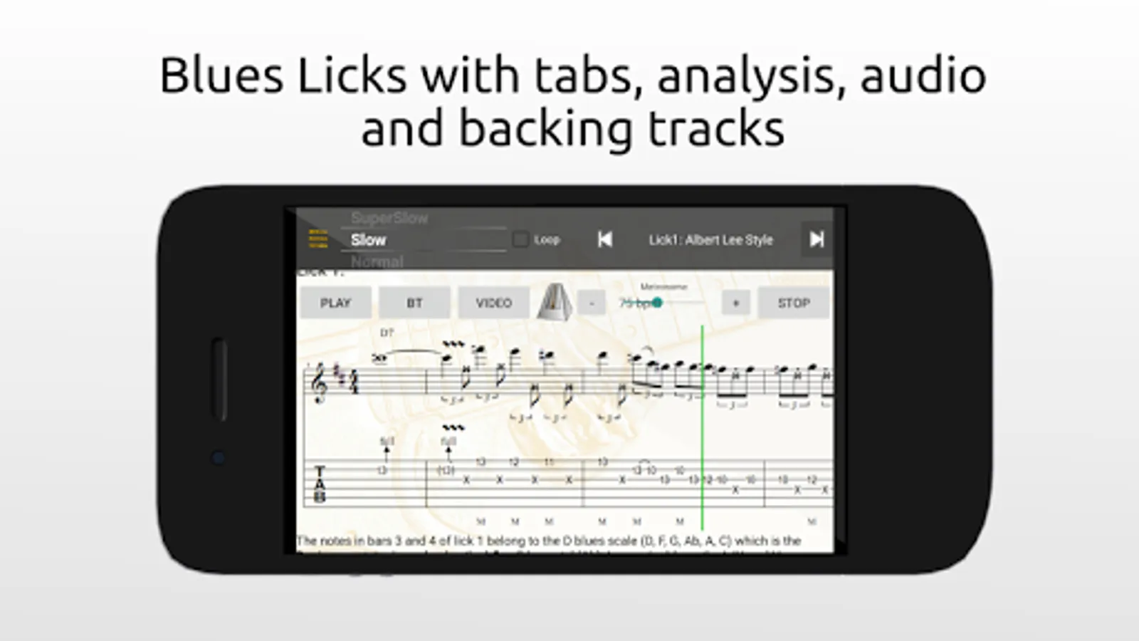 • 20 Licks with tabs, audio and backing tracks at three different speeds