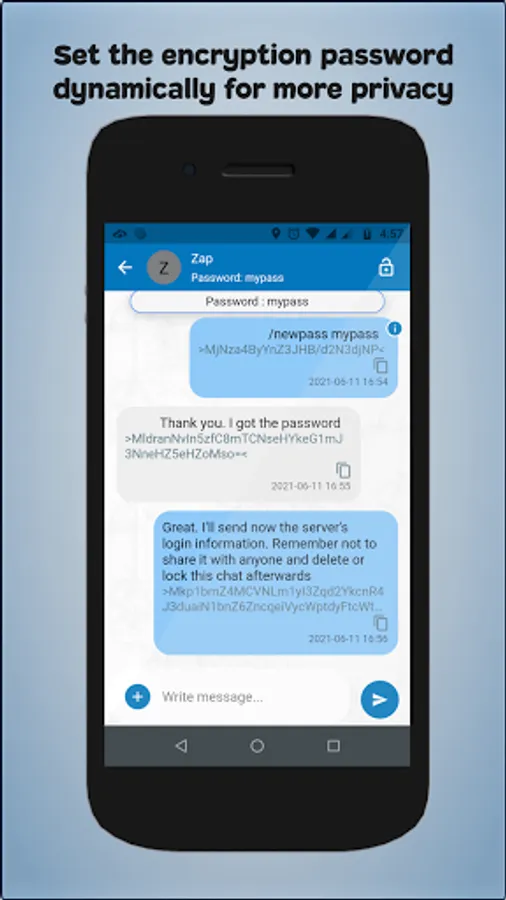 - Advanced users can change the encryption password and encryption algorithm several times throughout a single conversation.