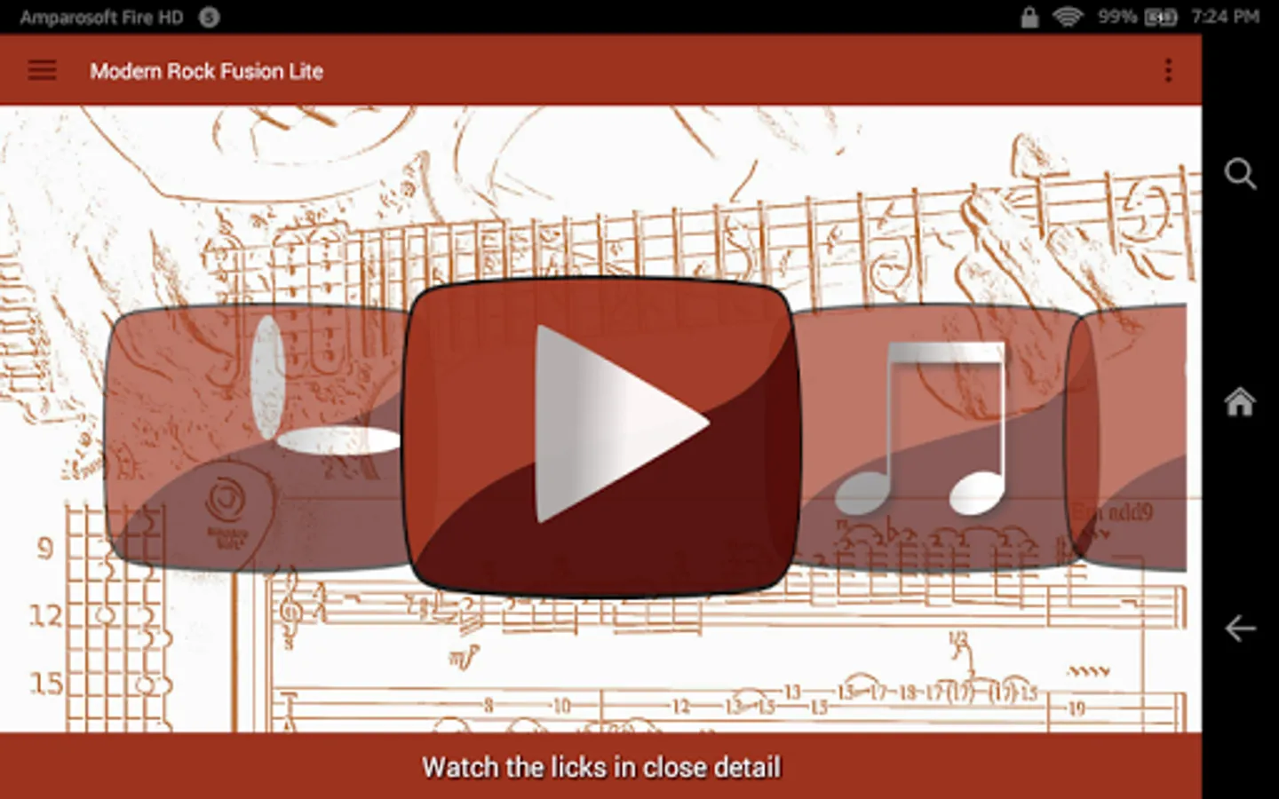 Start learning to play Rock-Fusion/Jazz-Rock with high quality video, audio and tabs at three different speeds.