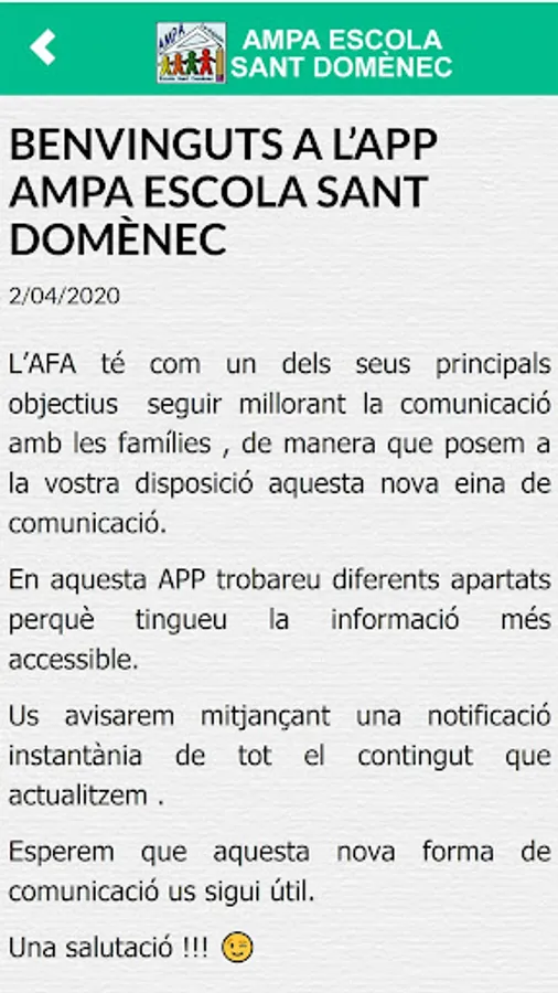 Des d'aquesta APP, us mantindrem informats mitjançant notificacions instantaneous de totes les activitats, notícies i esdeveniments que realitzem, also us farem to arrive tota that information that entenguem us followed the l'educació dels vostres filles i fills.