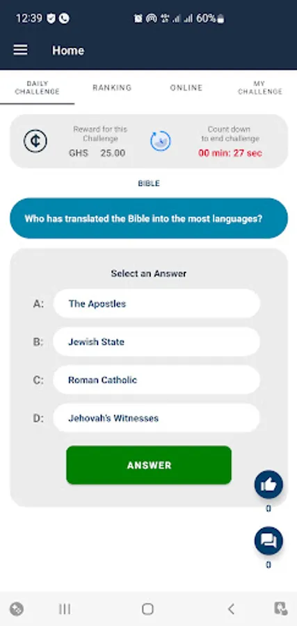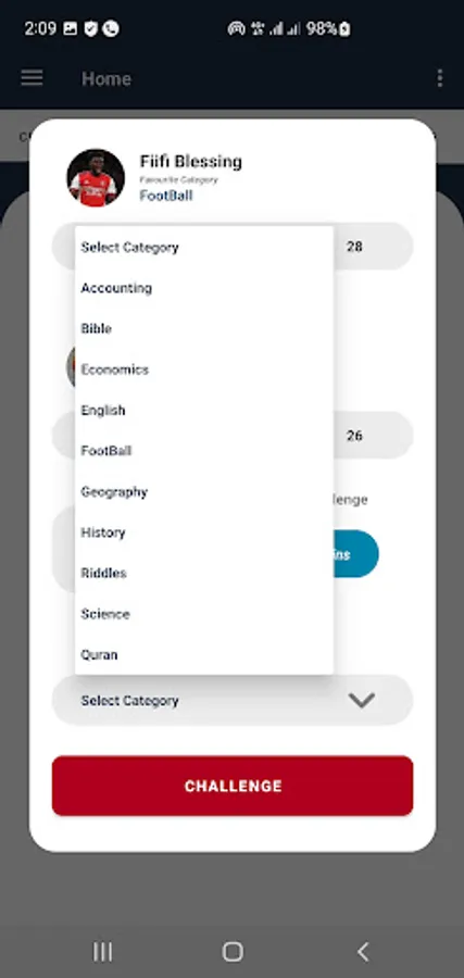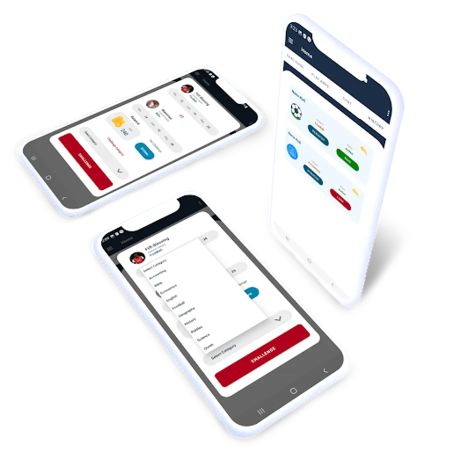 Brain Kombat play area creates a challenging platfor where users challenge each other in a quiz form with their own questions based on selected category to play or challenge.