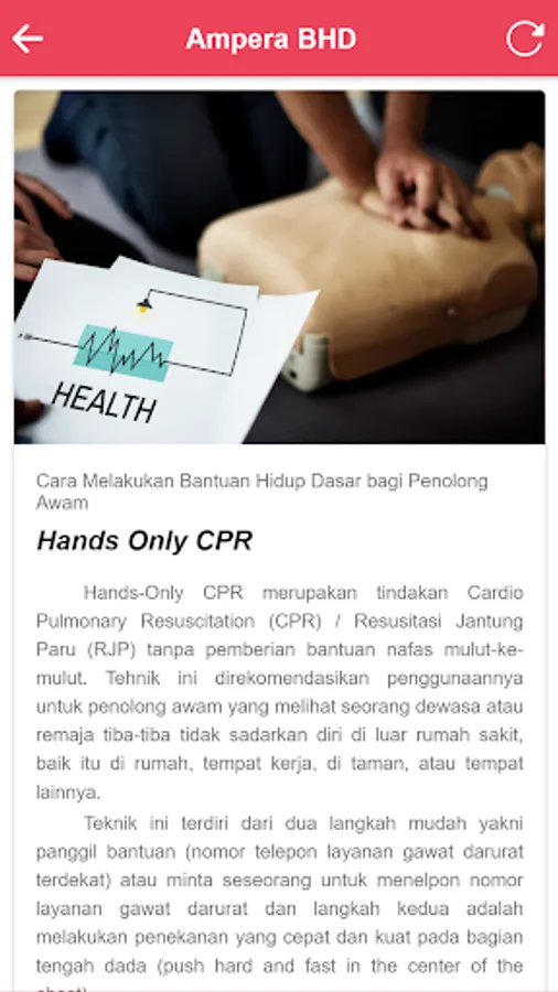 Ampera BHD application is an abbreviation of Lay Smart And Skilled Basic Life Support Android-based, hopefully this application can help ordinary people in doing basic life support, all can do it ;)