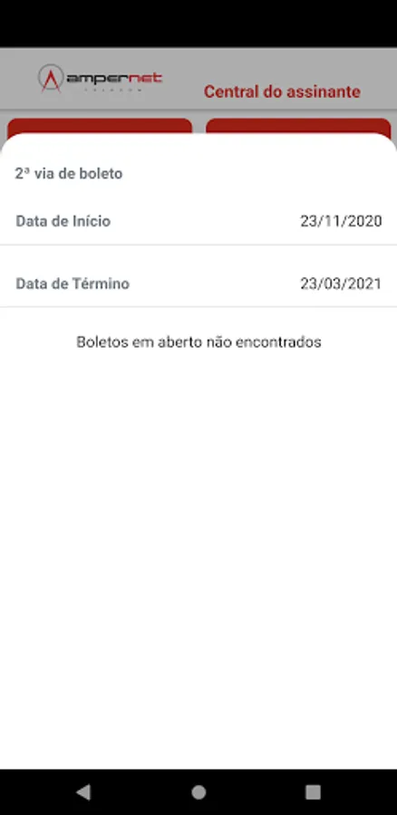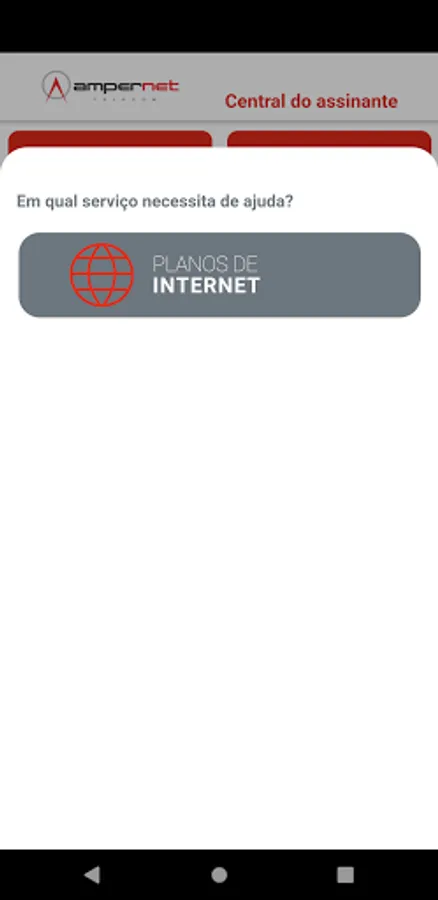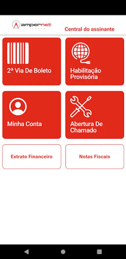 This is the Ampernet application, a practical way to access information about your plan, such as: 2nd copy of bank slip, provisional license, access to registration data, financial statement, invoices, in addition, facility to open technical calls to the internet and phone