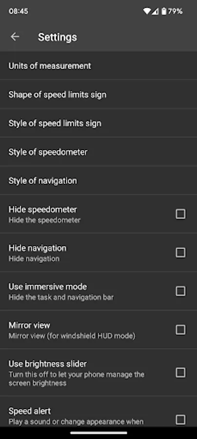 - Choose between miles or kilometers per hour;