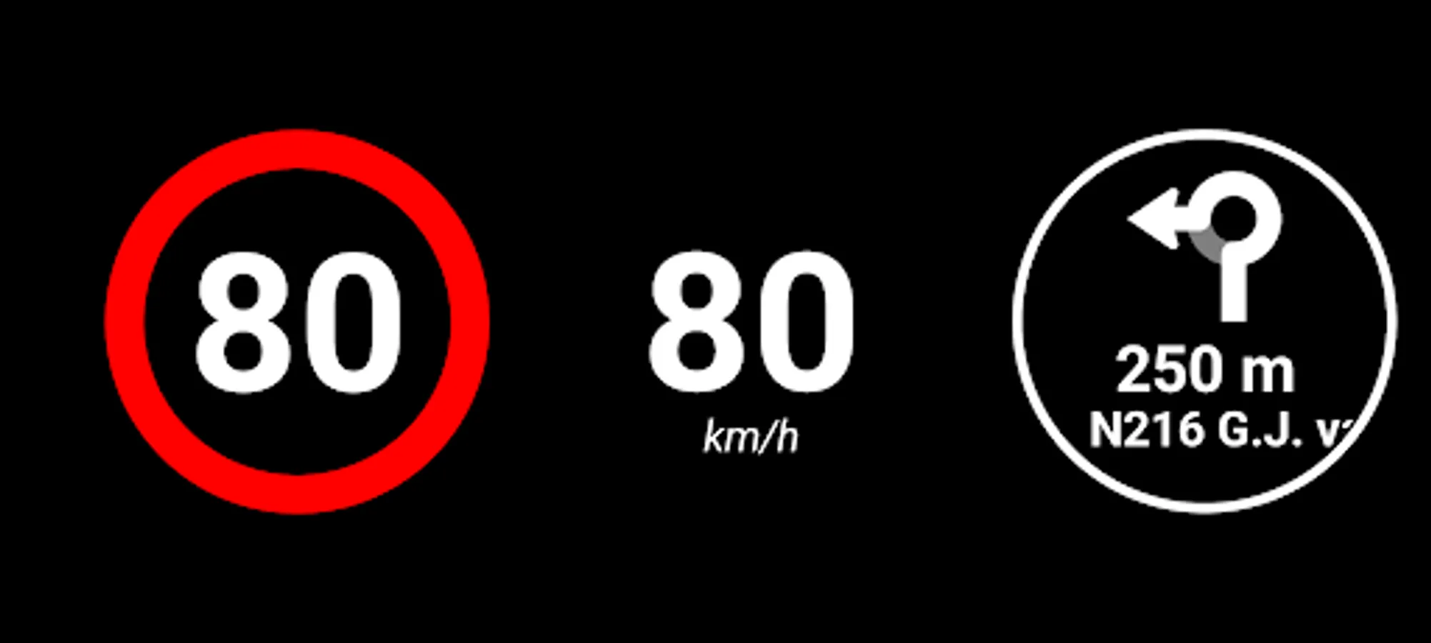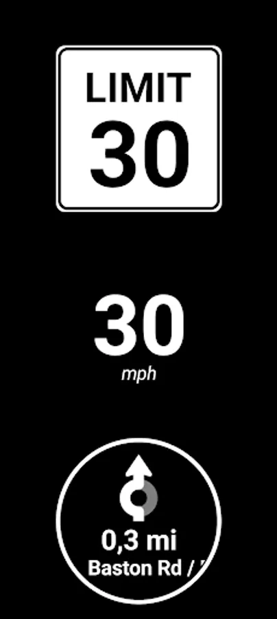 HUD Speed Limits shows the speed limit of the road you're on, together with a speedometer and navigation directions. Optionally it can display the speed limit, speedometer and navigation directions mirrored, for usage as a head-up display (HUD) on you windshield.