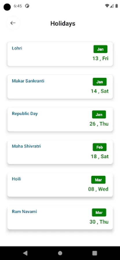 - Yearly Holiday Calendar