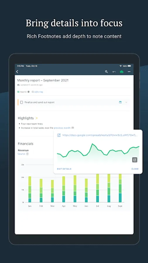 - Rich Footnotes that hold text, code, images, or all the above is our flagship feature