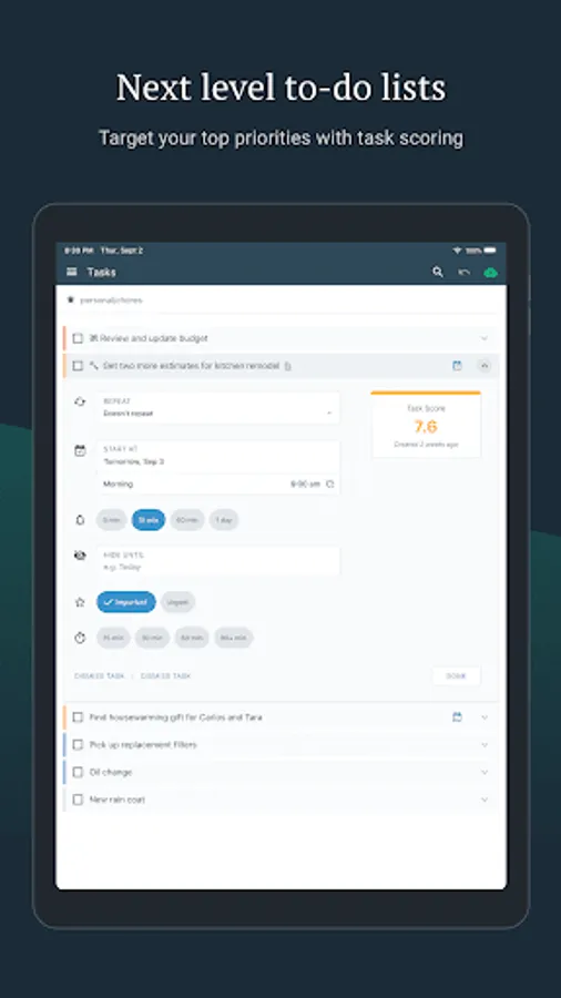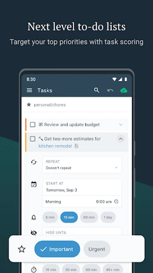 - Tasks can be customized to recur at flexible intervals or hide until later