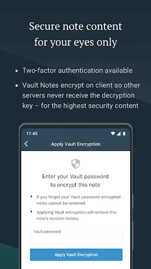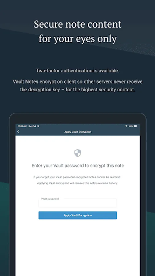 - Notes can be Vault Encrypted with a password that's never sent to our servers