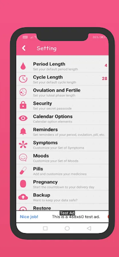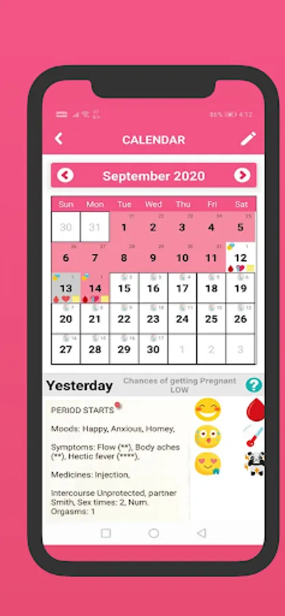Track irregular periods, weight, temperature, moods, blood flow, PMS symptoms, mucus, weight, BMI, basal temperature, ovulation test, pregnancy test, bust hip waist, blood pressure and more. Take full control of your health!